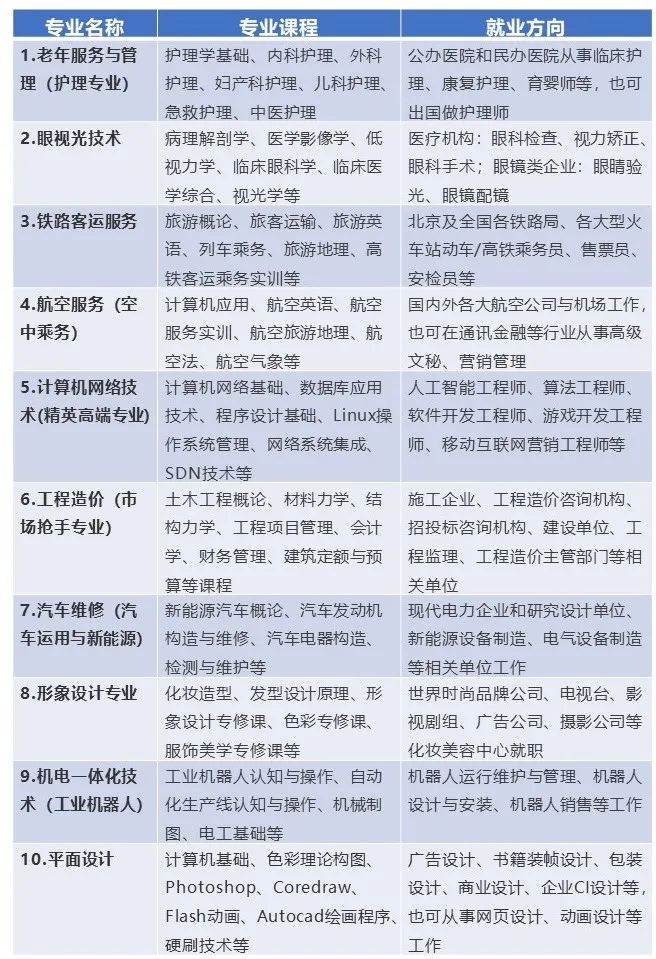 | 专业名称 | 专业课程 | 就业方向 |