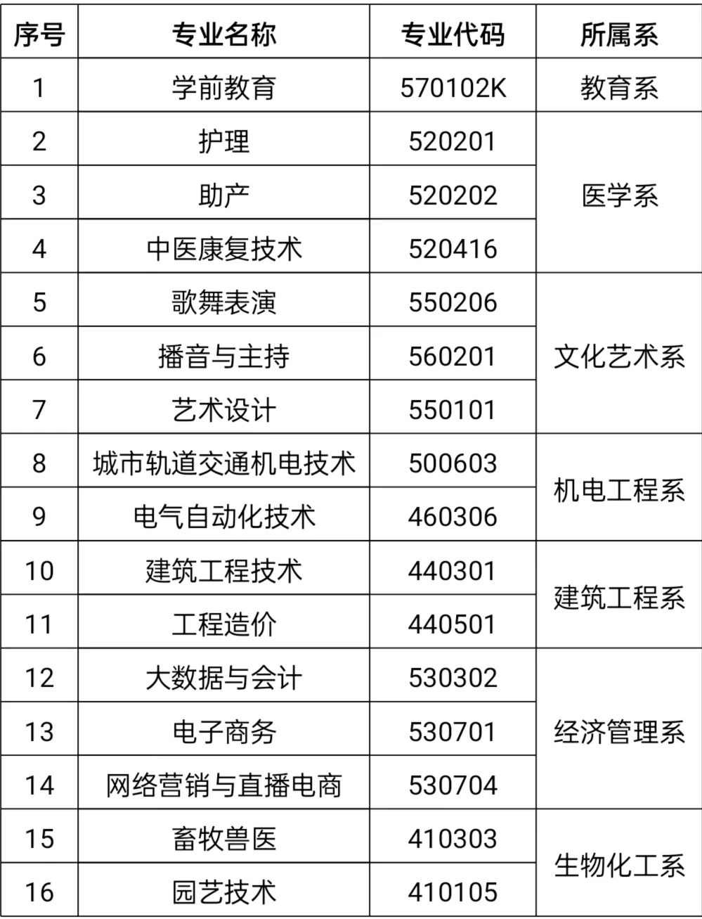 | 序号 | 专业名称 | 专业代码 | 所属系 |